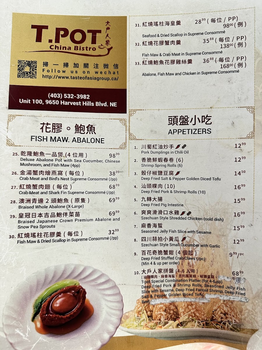 The menu at T.Pot China Bistro offers a balanced blend of traditional Chinese dishes and bistro-style comfort foods, creating a versatile dining experience well suited for both casual lunches and relaxed dinners. Whether you’re stopping by for a quick dim sum bite or settling in for a shared meal, the selection invites guests to explore a variety of familiar and distinctive flavors.